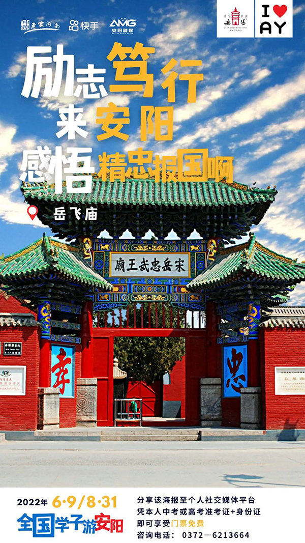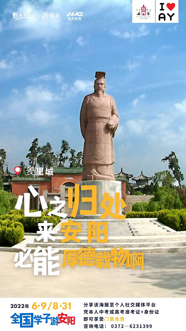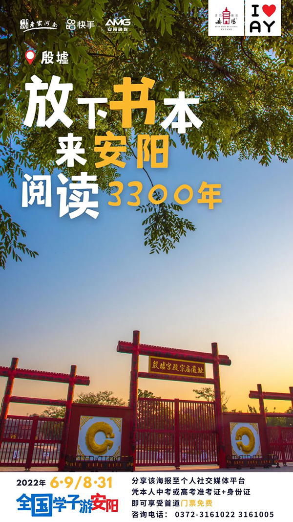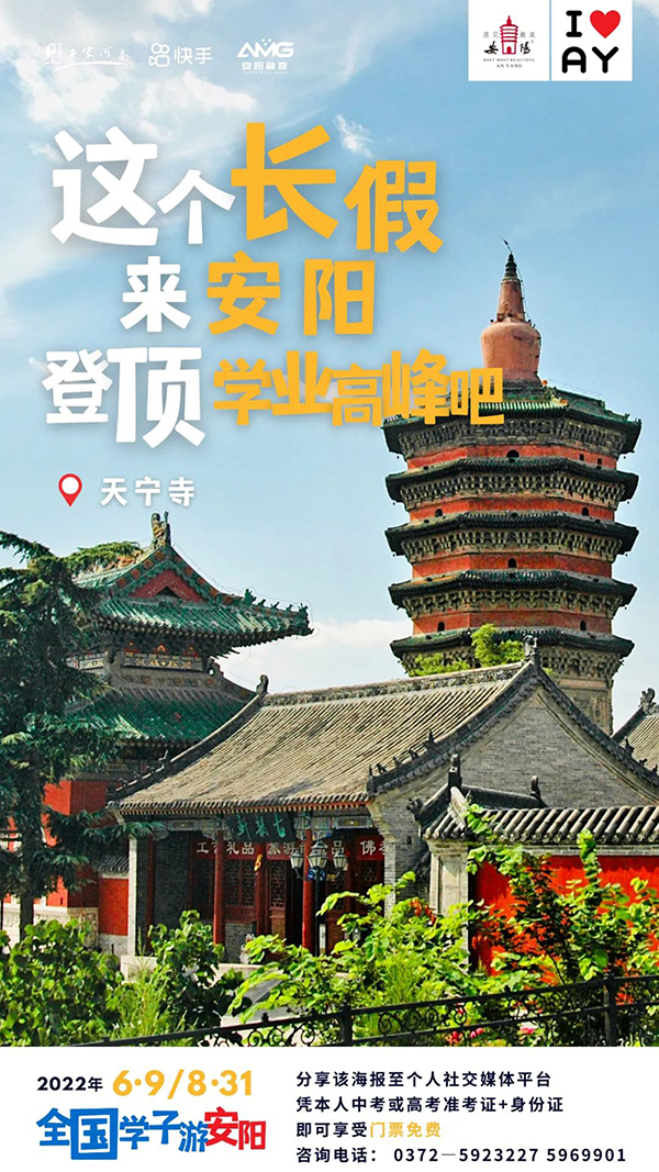 为迎接二十胜利召开,助力“行走河南·读懂中国”品牌体系建设,向年轻人讲好中国故事,安阳市举办“全国学子游安阳”2022快手网红文旅大会暨遇见美安阳短视频大赛活动。为让广大学子畅享古都之旅,在毕业季到来之际,安阳针对全国中、高考毕业生推出系列优惠政策,内容如下: