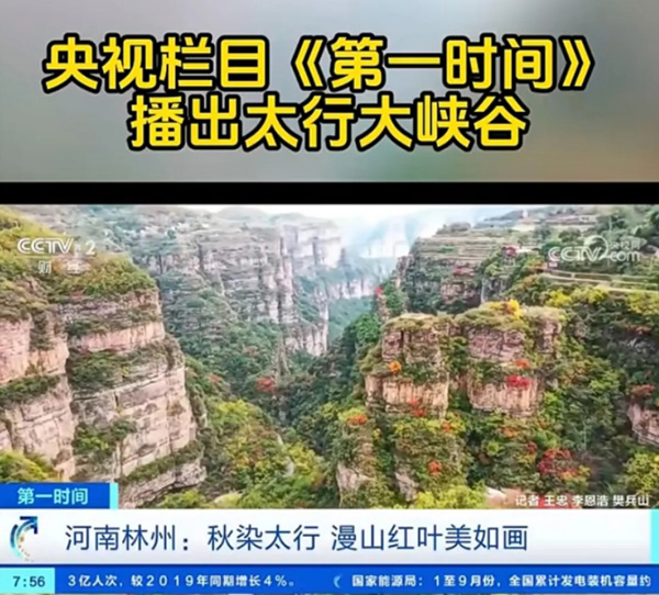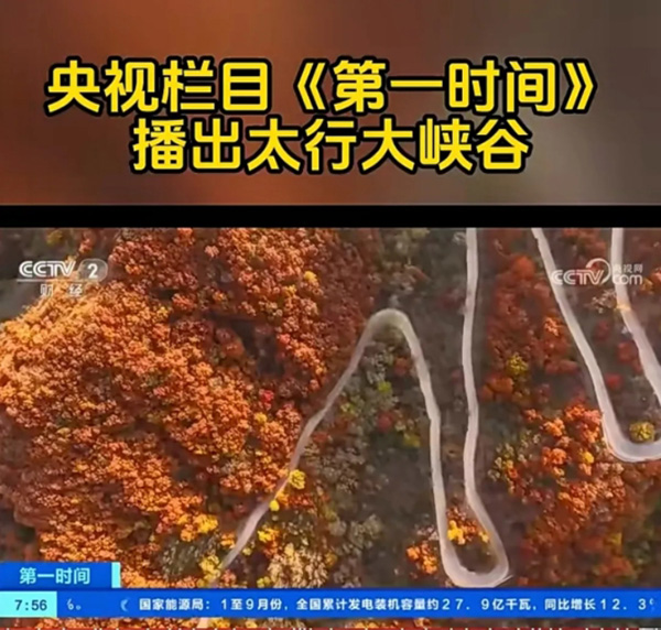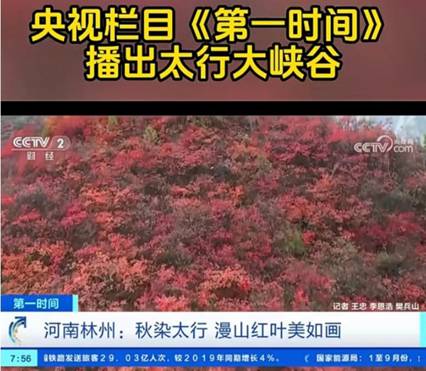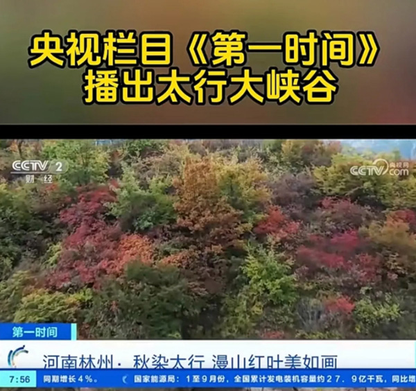 央视栏目《第壹时间》播出太行大峡谷漫山红叶景观